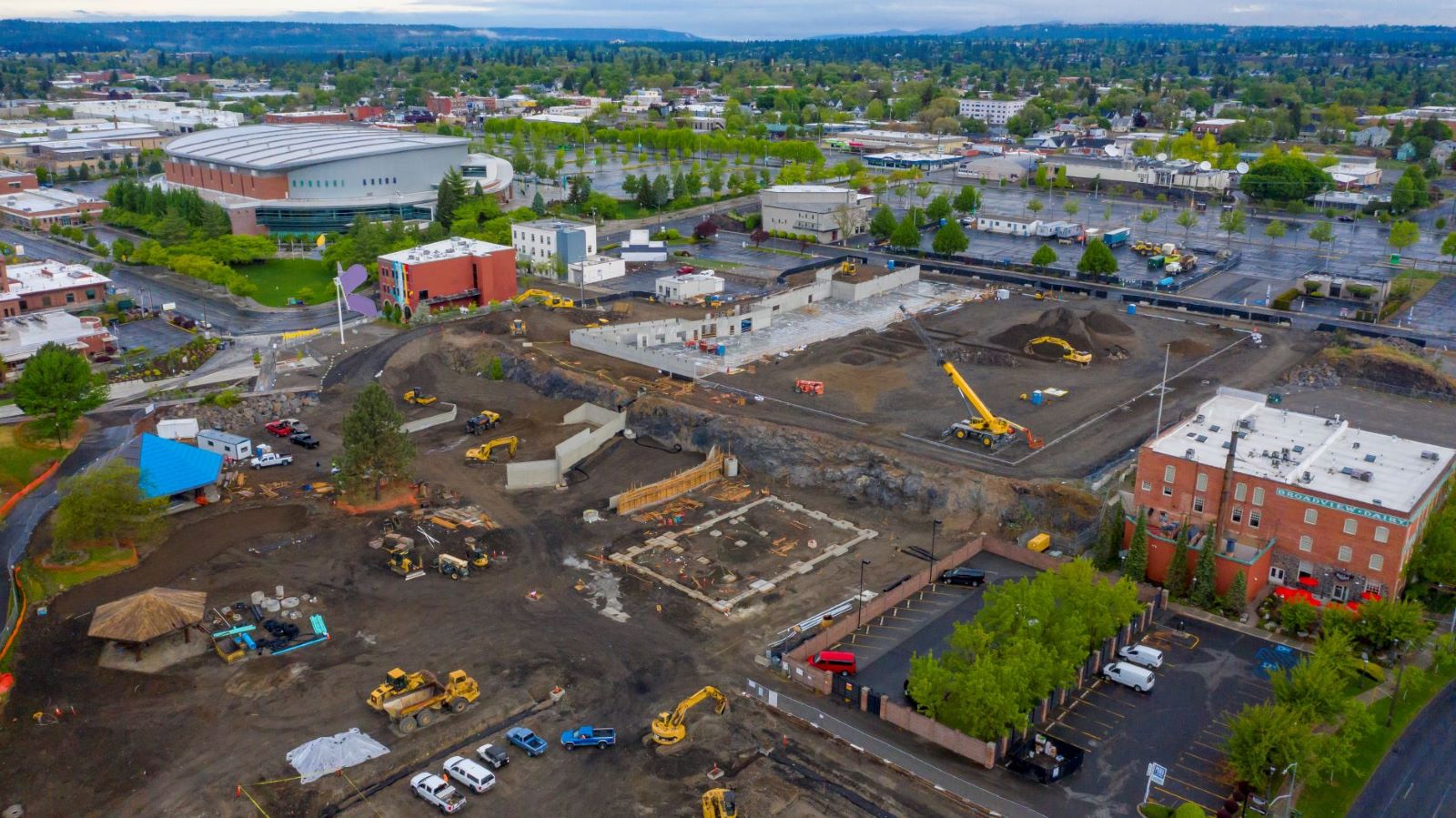 May 15, 2020 Continued progress at the North Bank for utility install, Regional Sportsplex, Spokane Parks additions and rennovations.