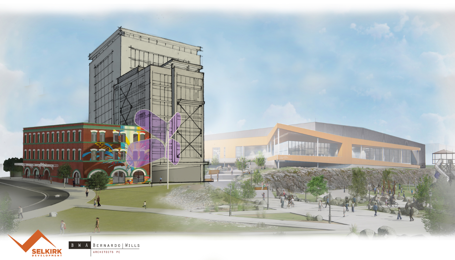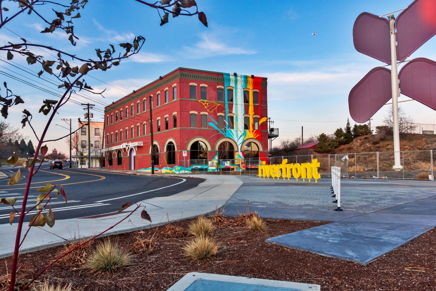 Spokane Artist, Ben Joyce, was commissioned for a vibrant mural to adorn the existing Papillon Bldg.